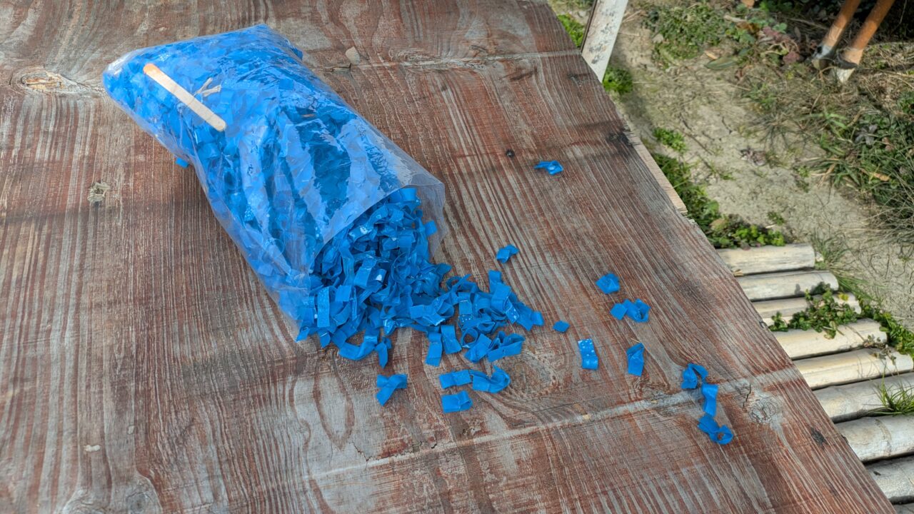 青いテープを畑にポイポイ捨てる訳にもいかず