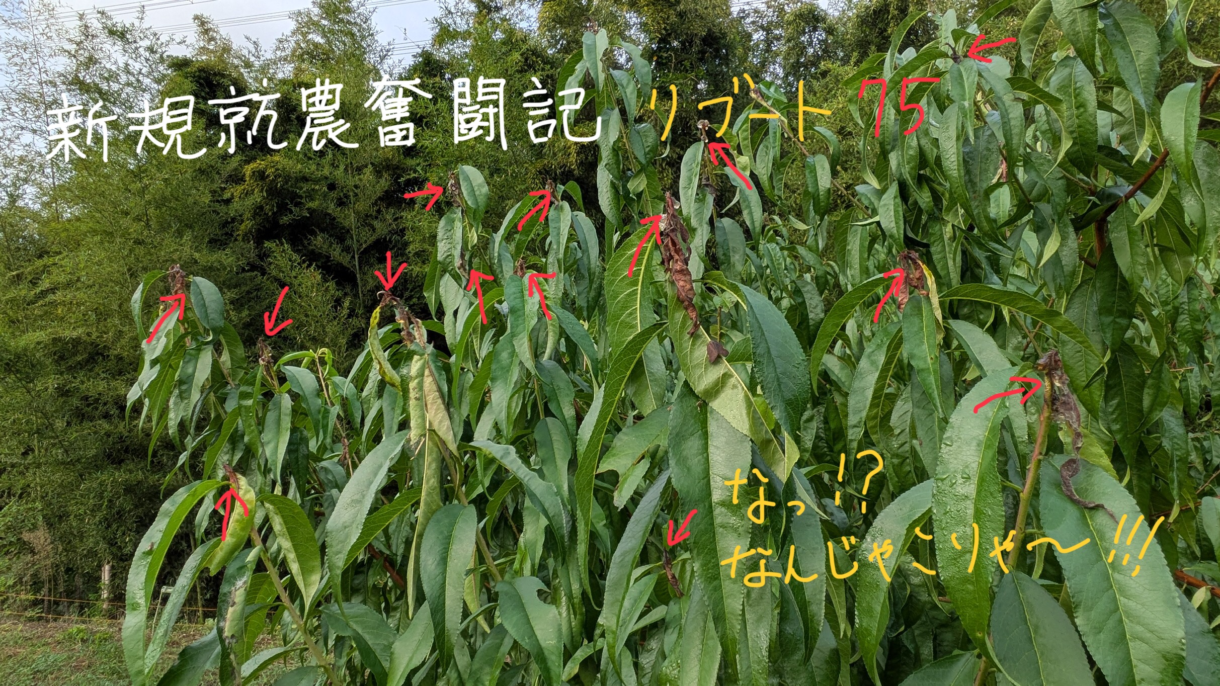 除草剤で枯れた雑草をかき分けてニョキッと生えているのは