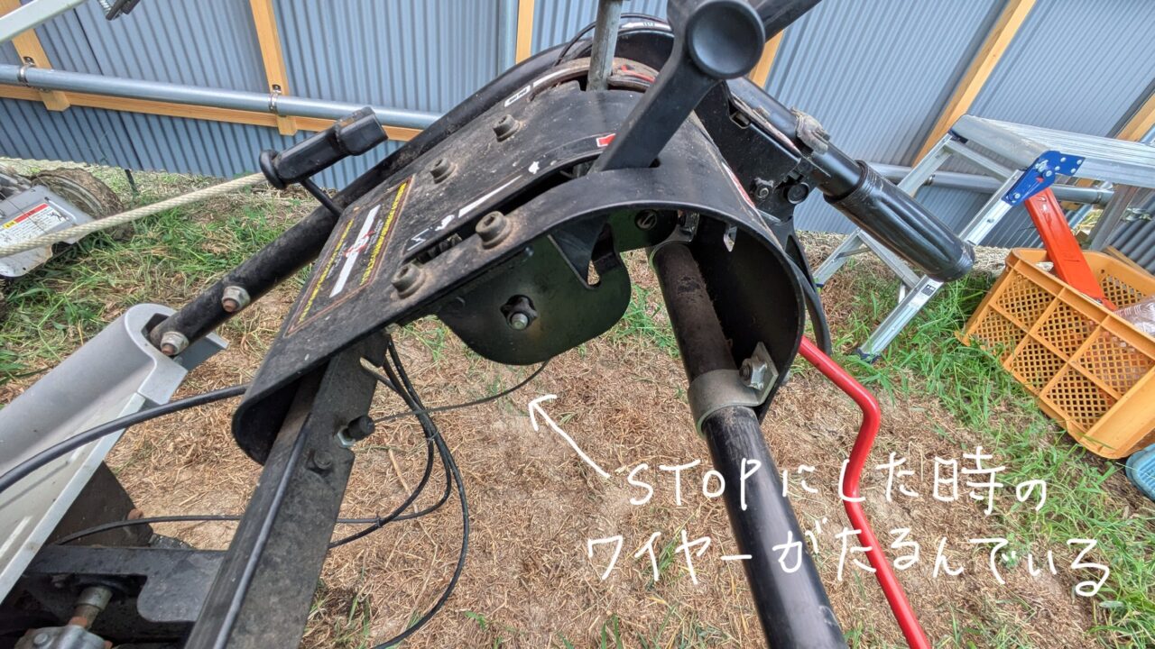 STOP位置でこれくらいワイヤーが戻ればエンジン停止する