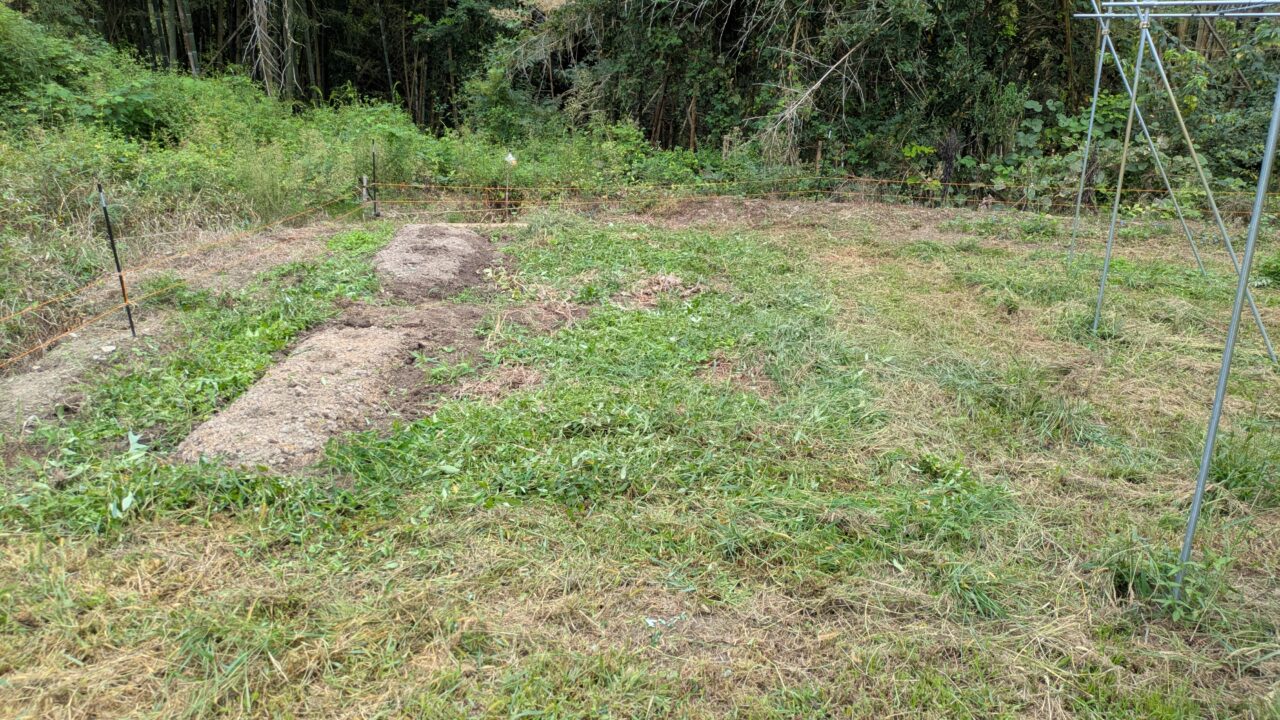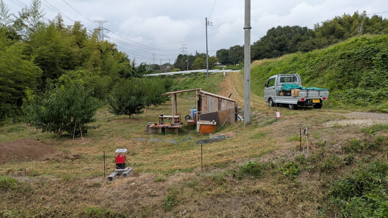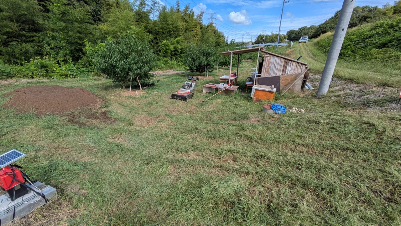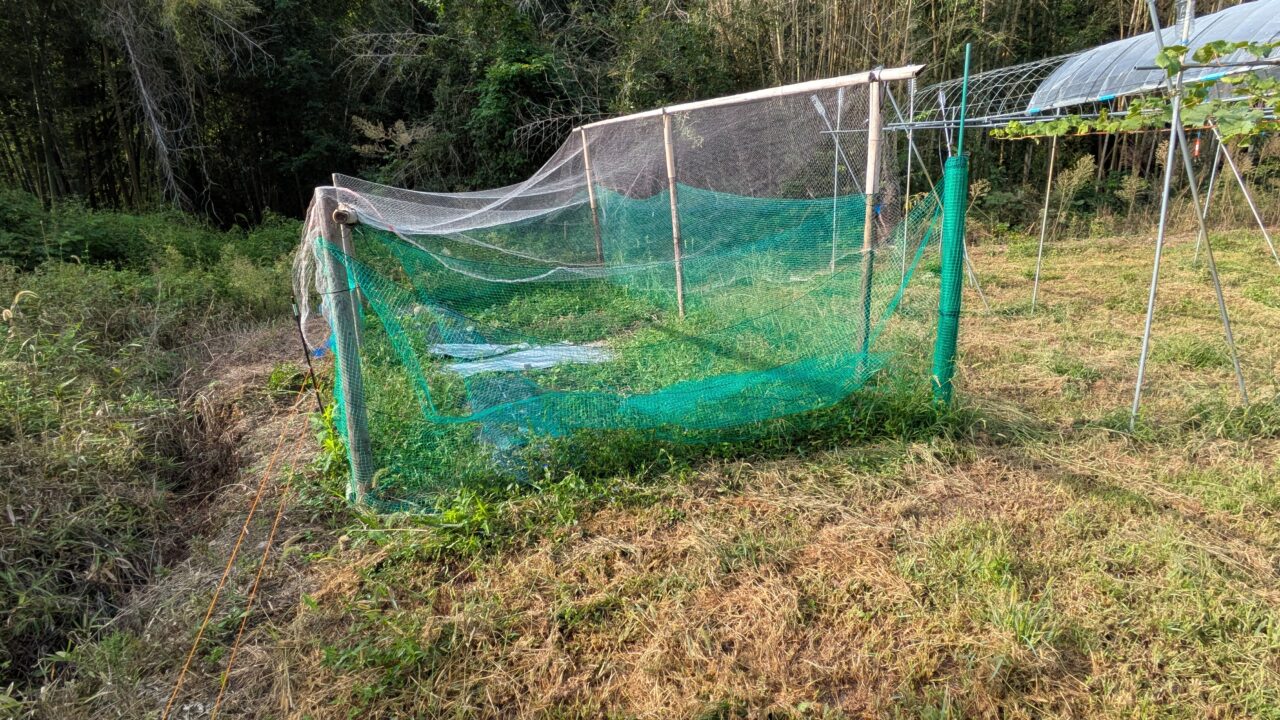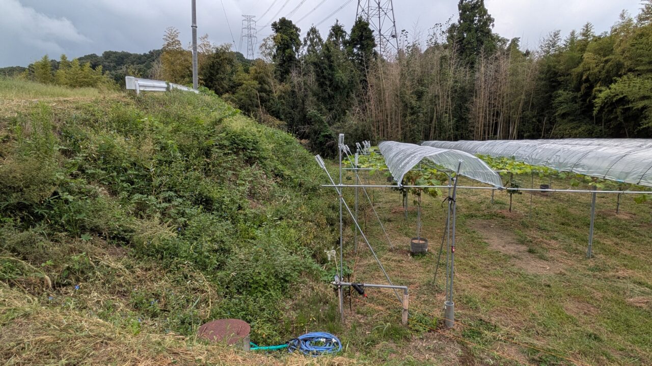 但し、ぶどう棚の支柱や木、電柵など障害物が多い
