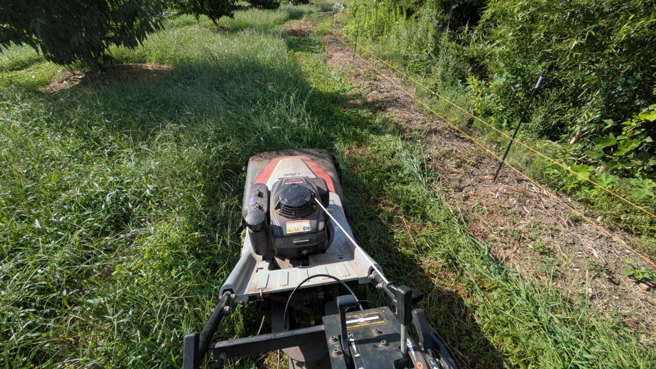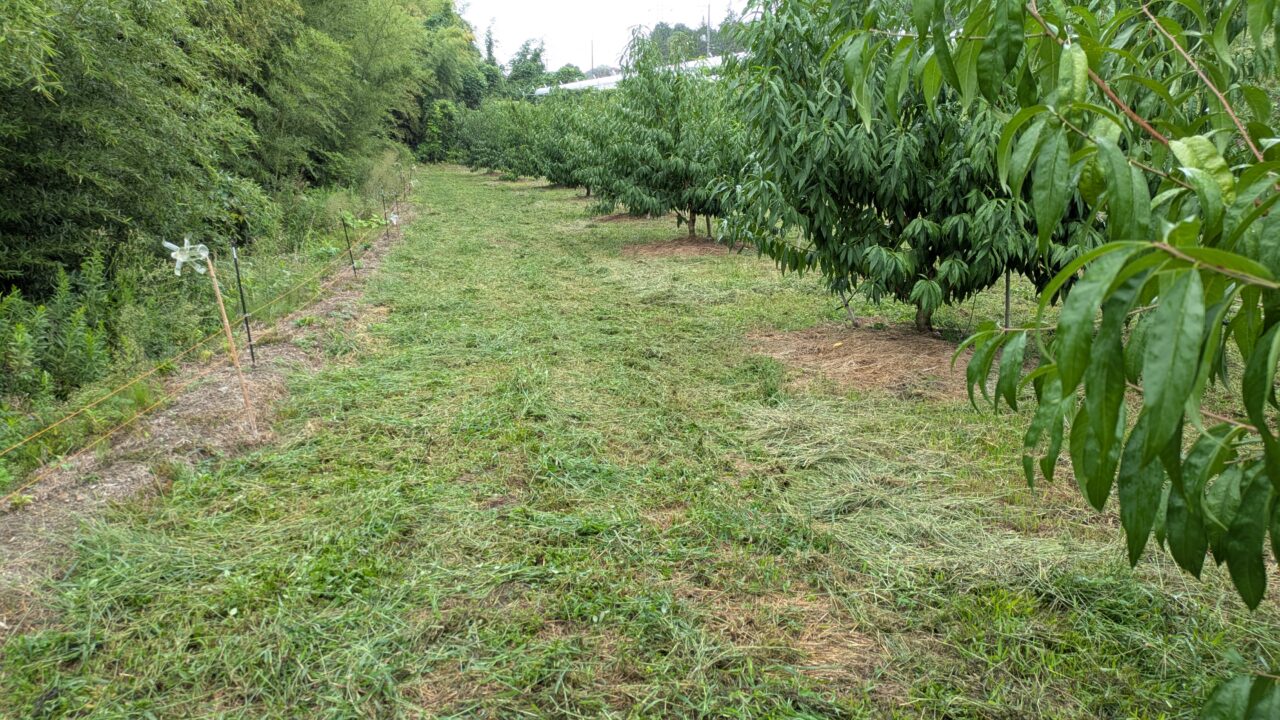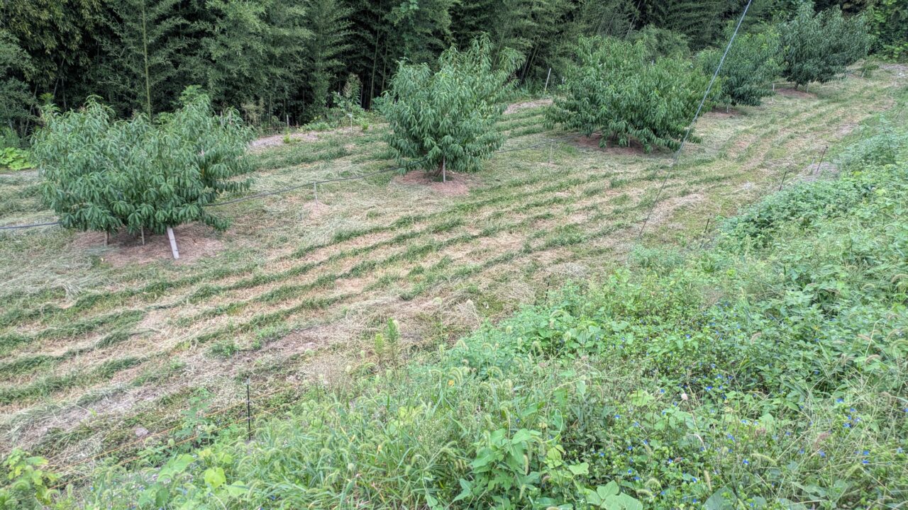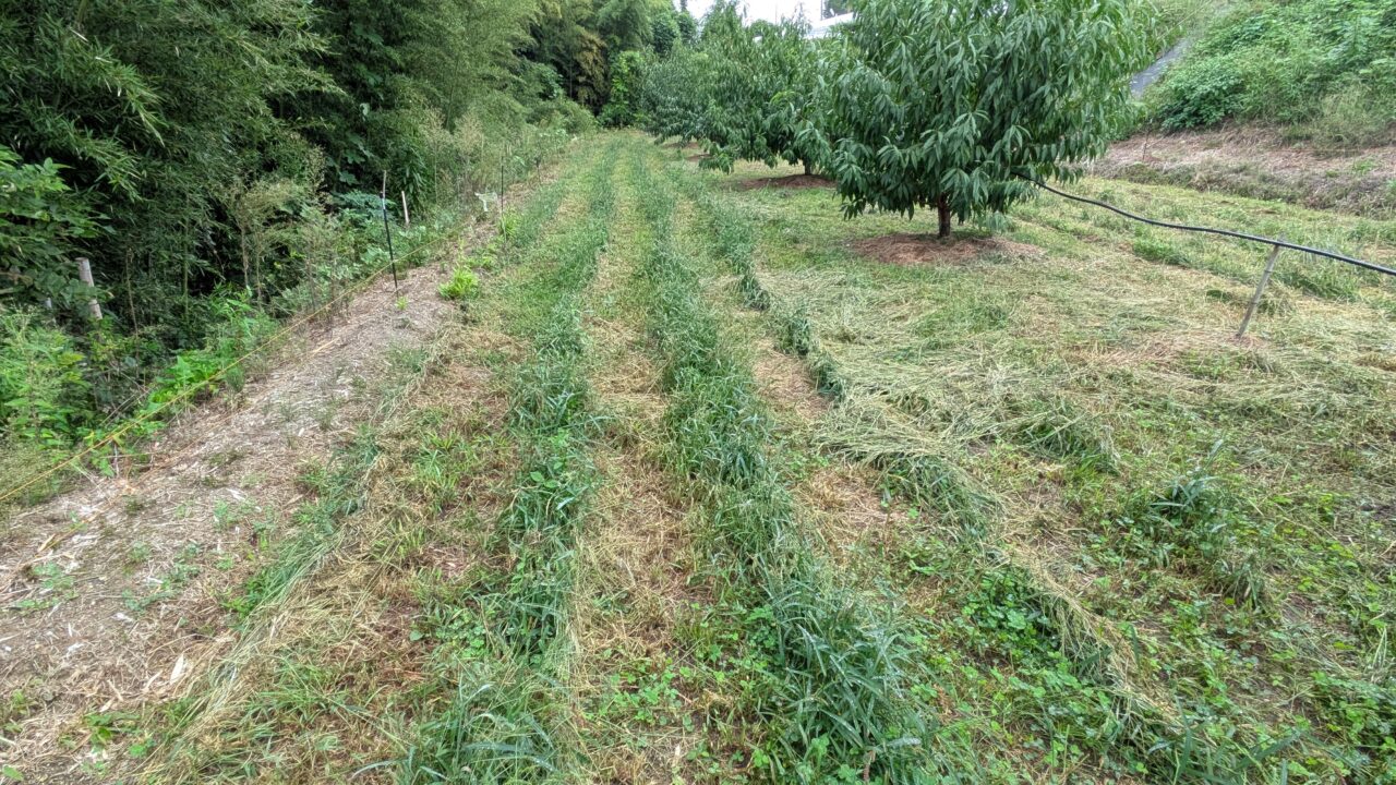 但し、ぶどう棚の支柱や木、電柵など障害物が多い