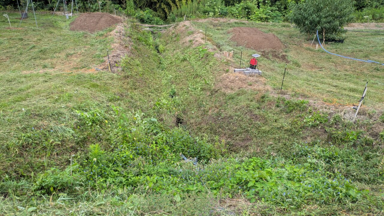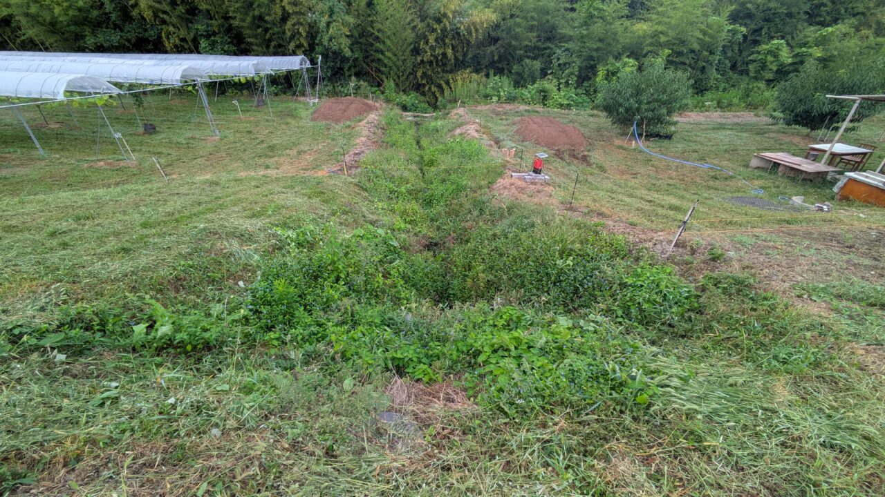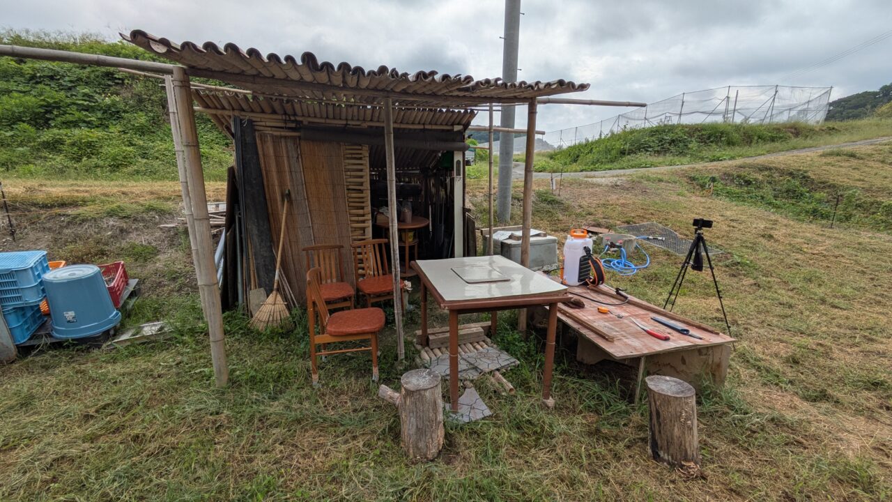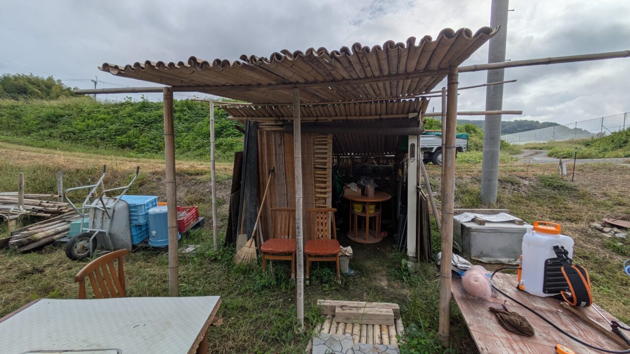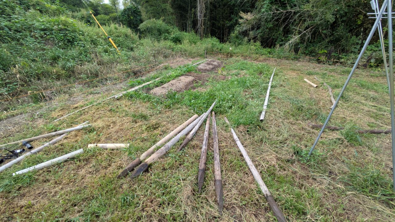 但し、ぶどう棚の支柱や木、電柵など障害物が多い