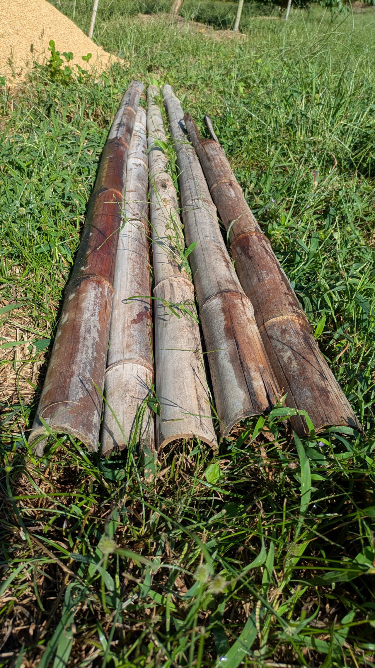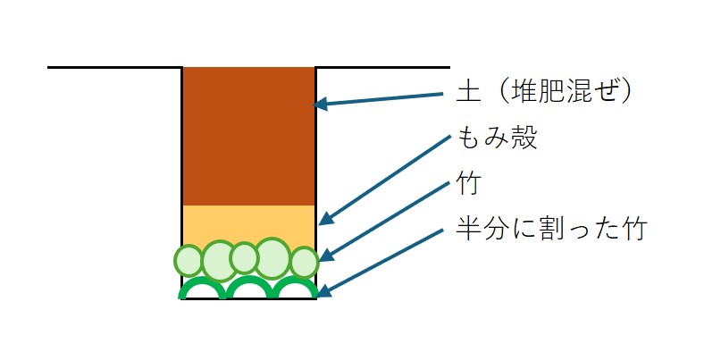 暗渠の底に半分に割って節を抜いた竹を敷いて