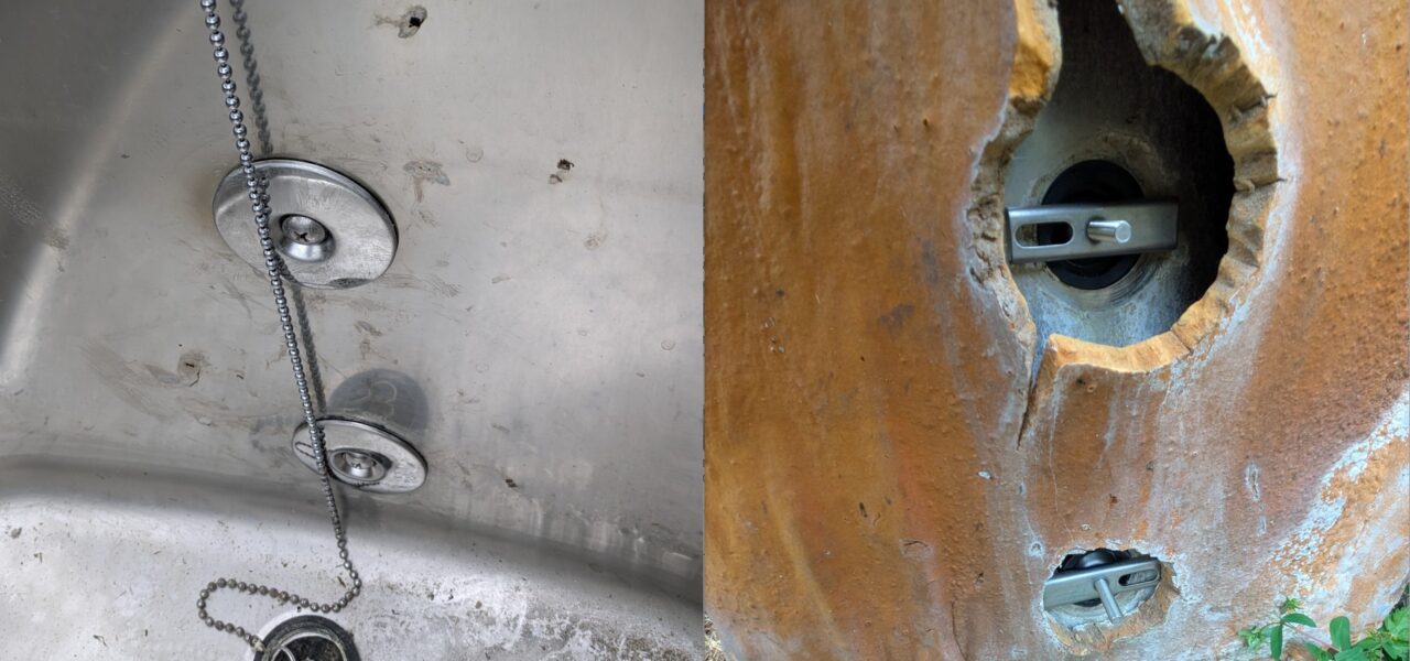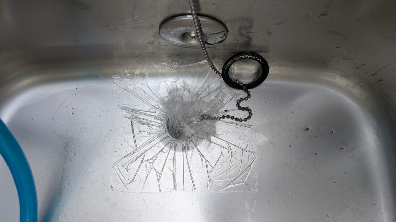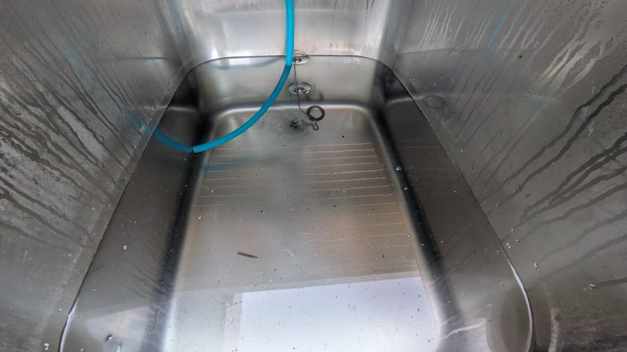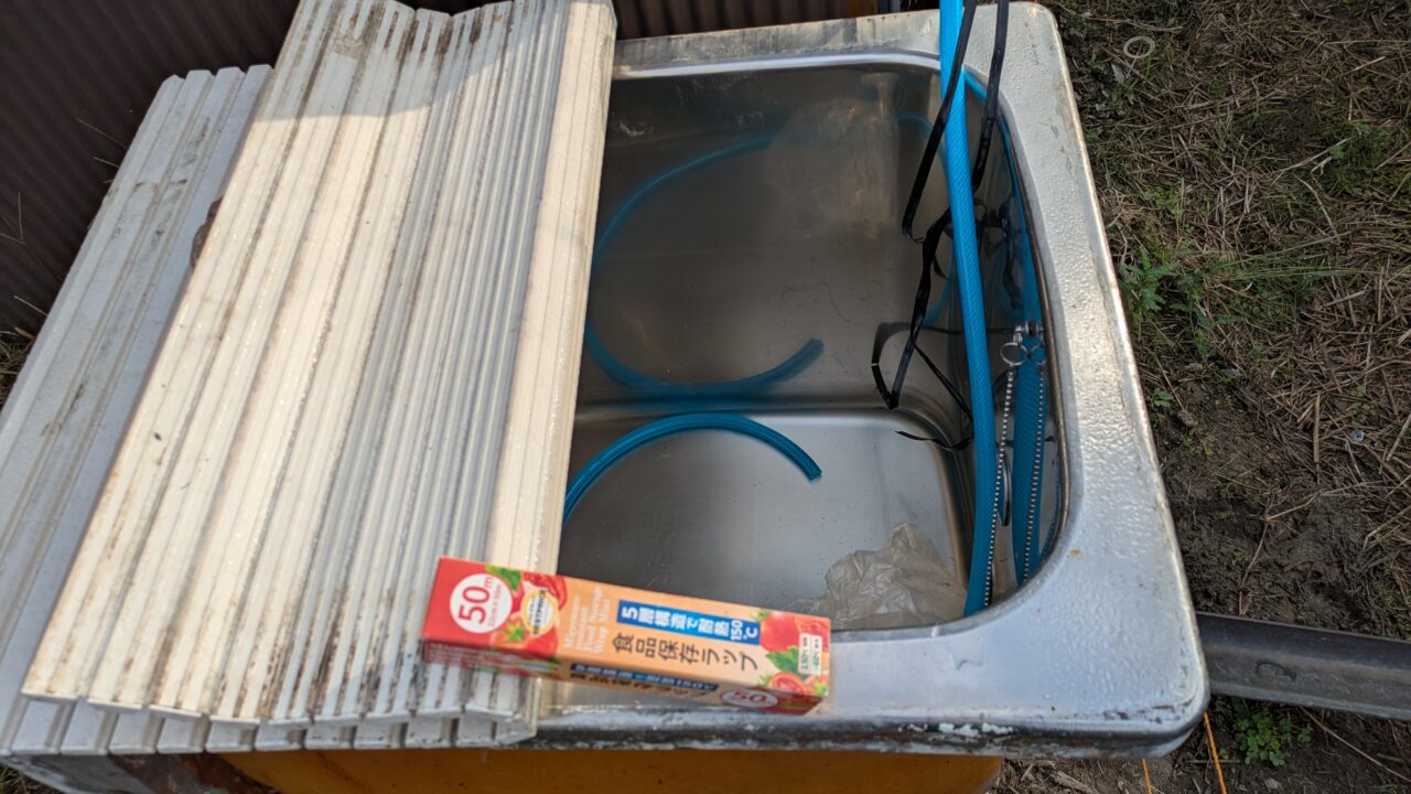 叔父に貰った廃材の風呂桶の穴を塞ぎ