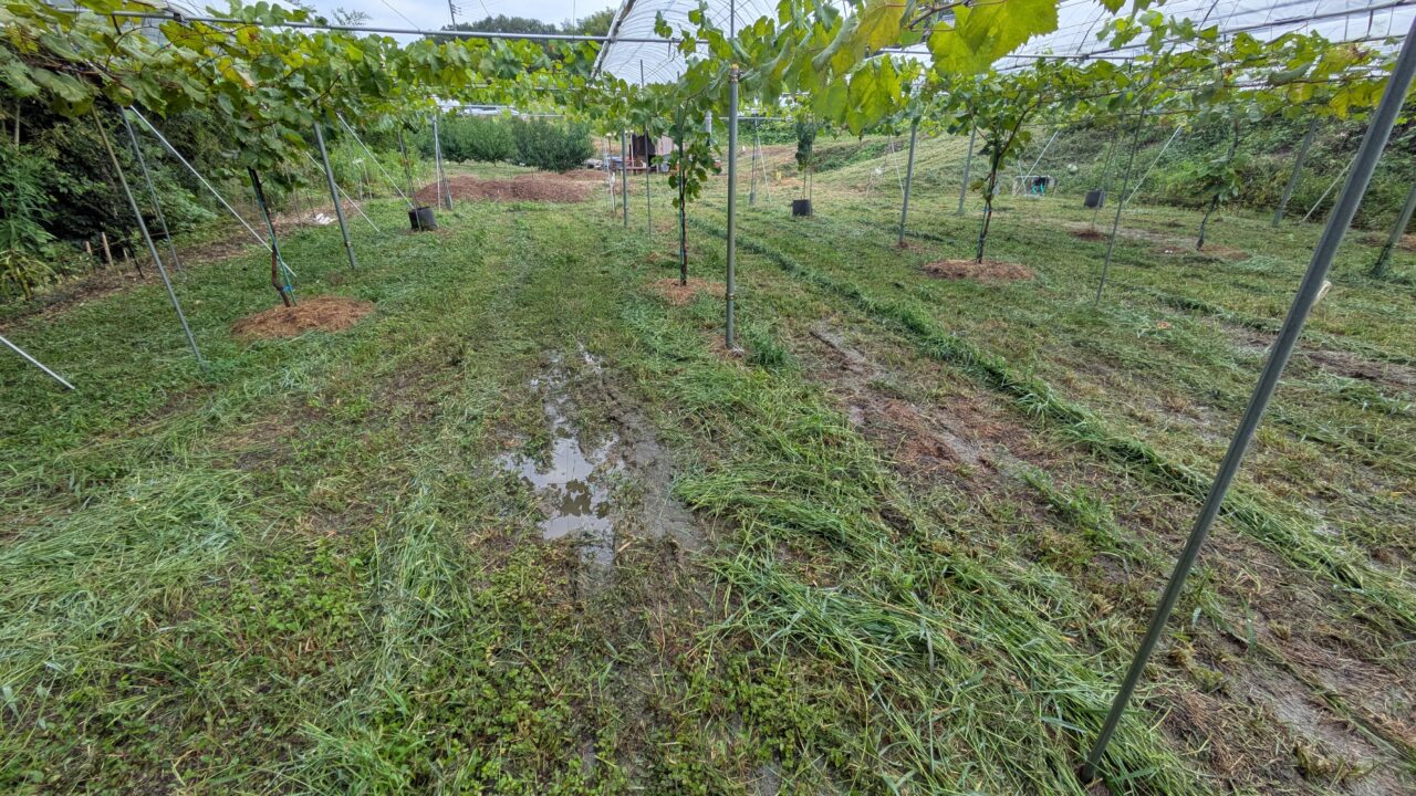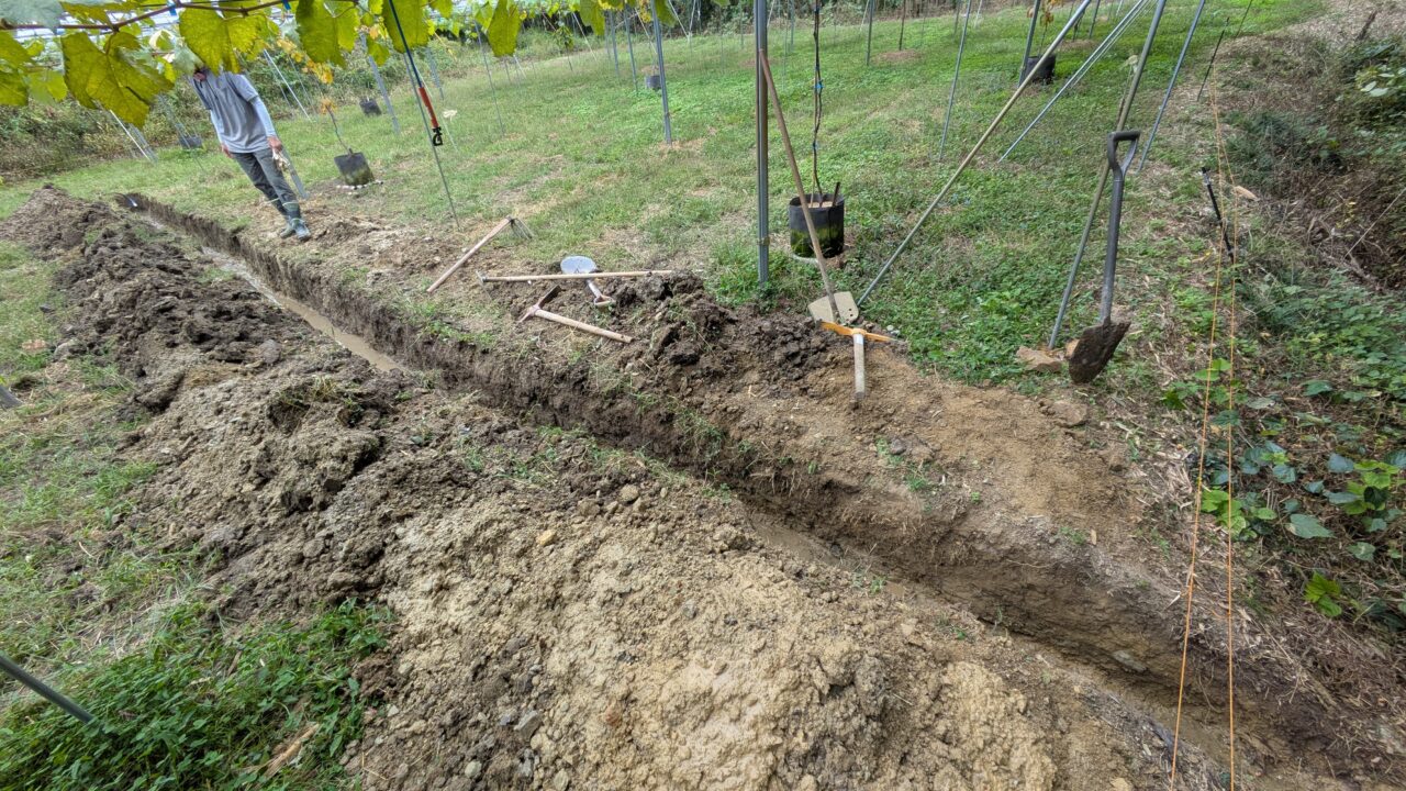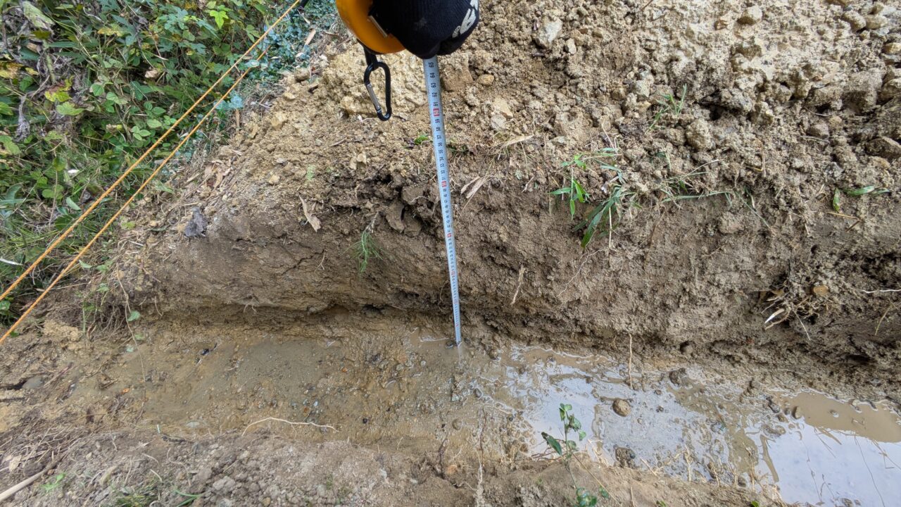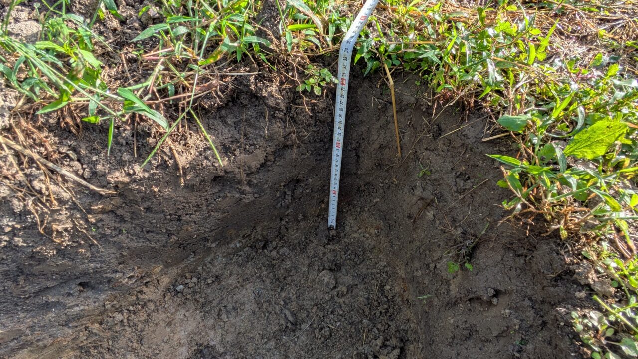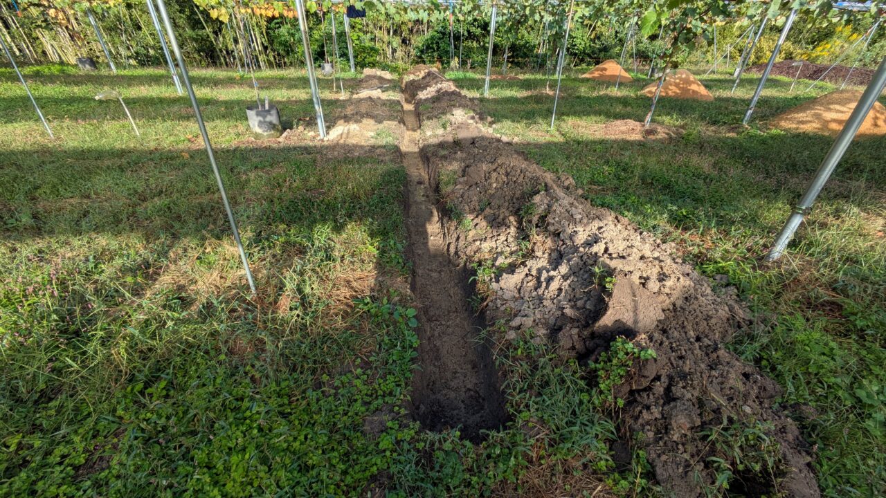 下段のぶどう畑には2年前に2本暗渠を入れています。