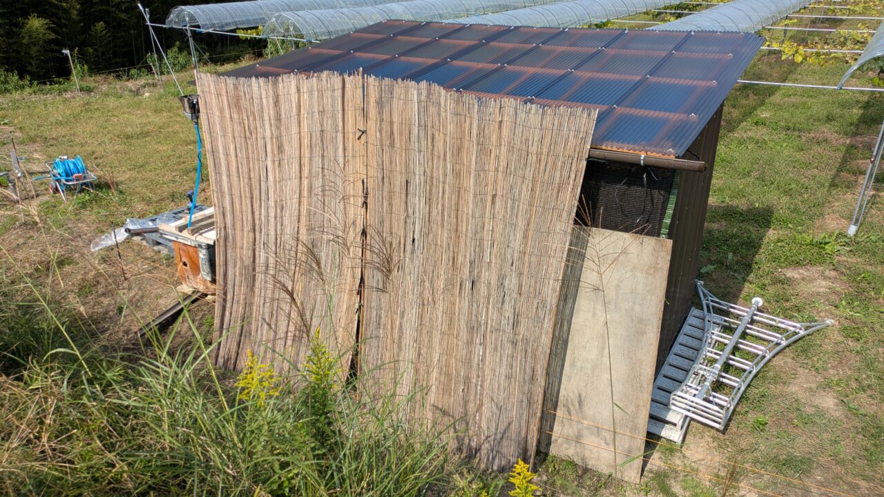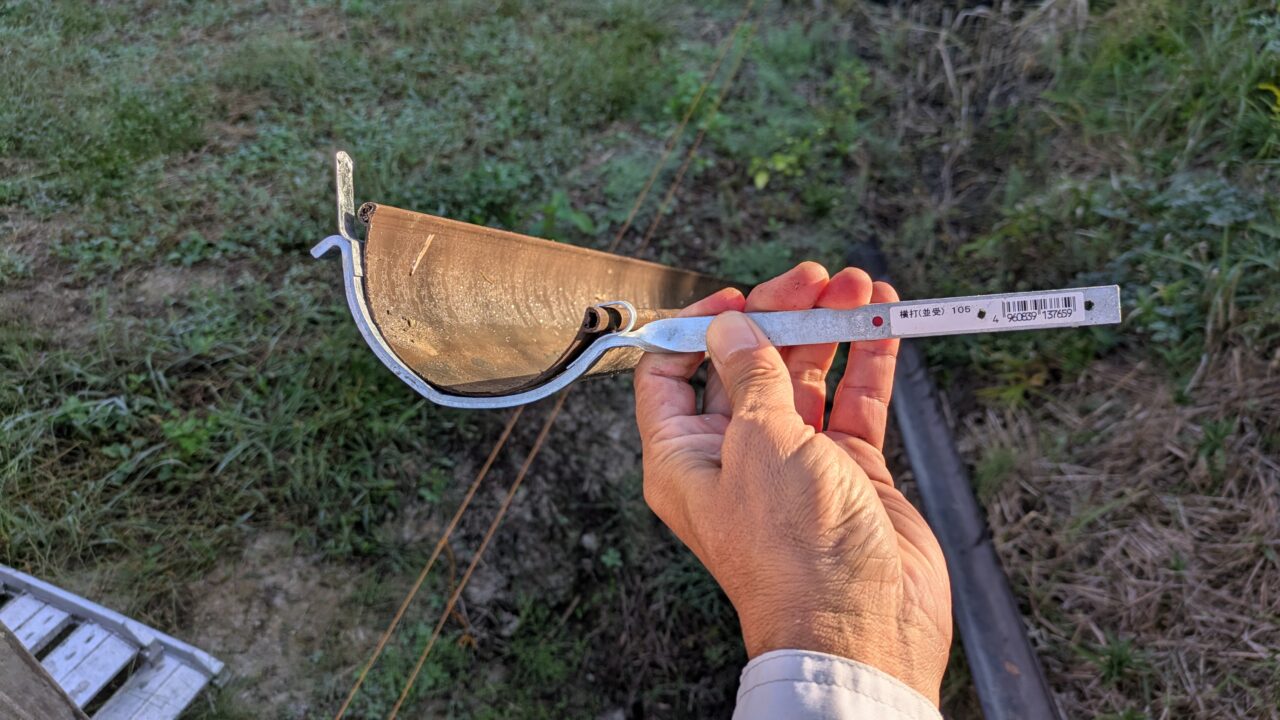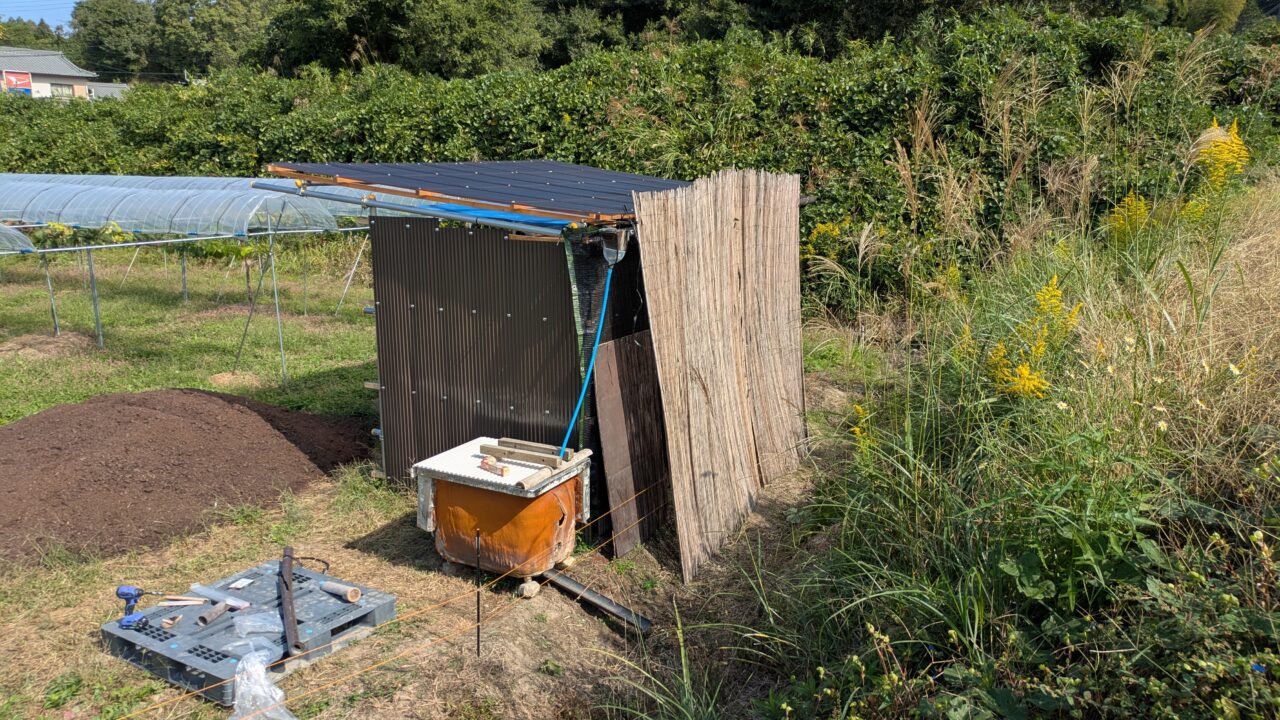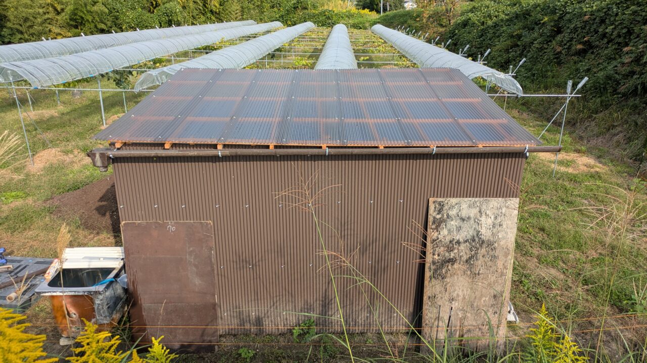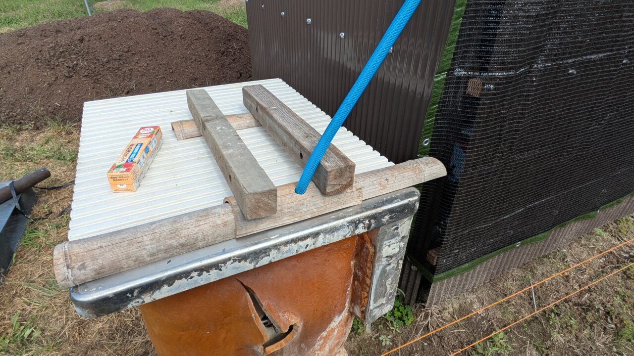 育苗ハウスに樋をつけて雨水を溜めようと思います。