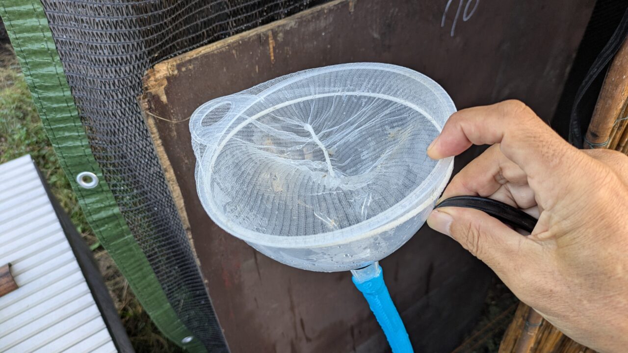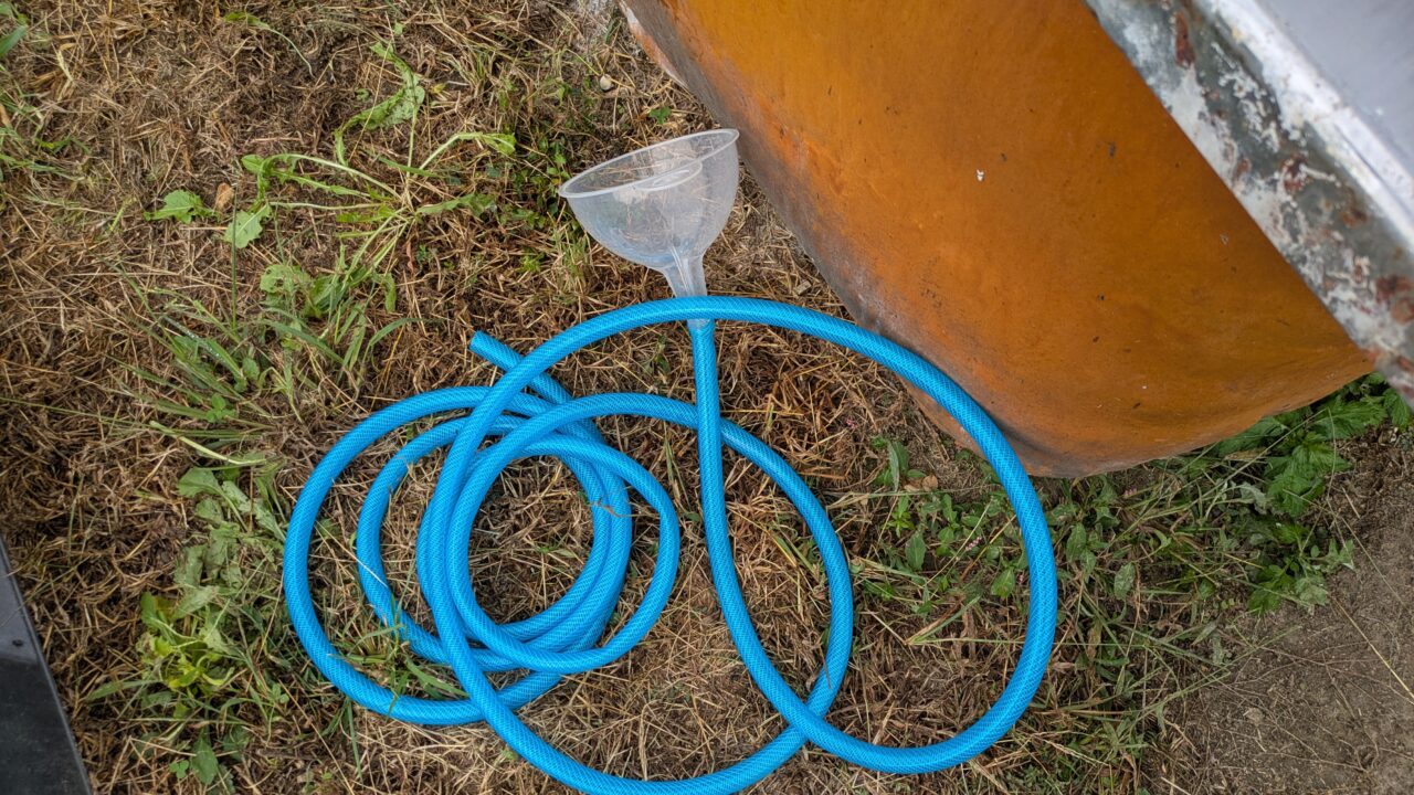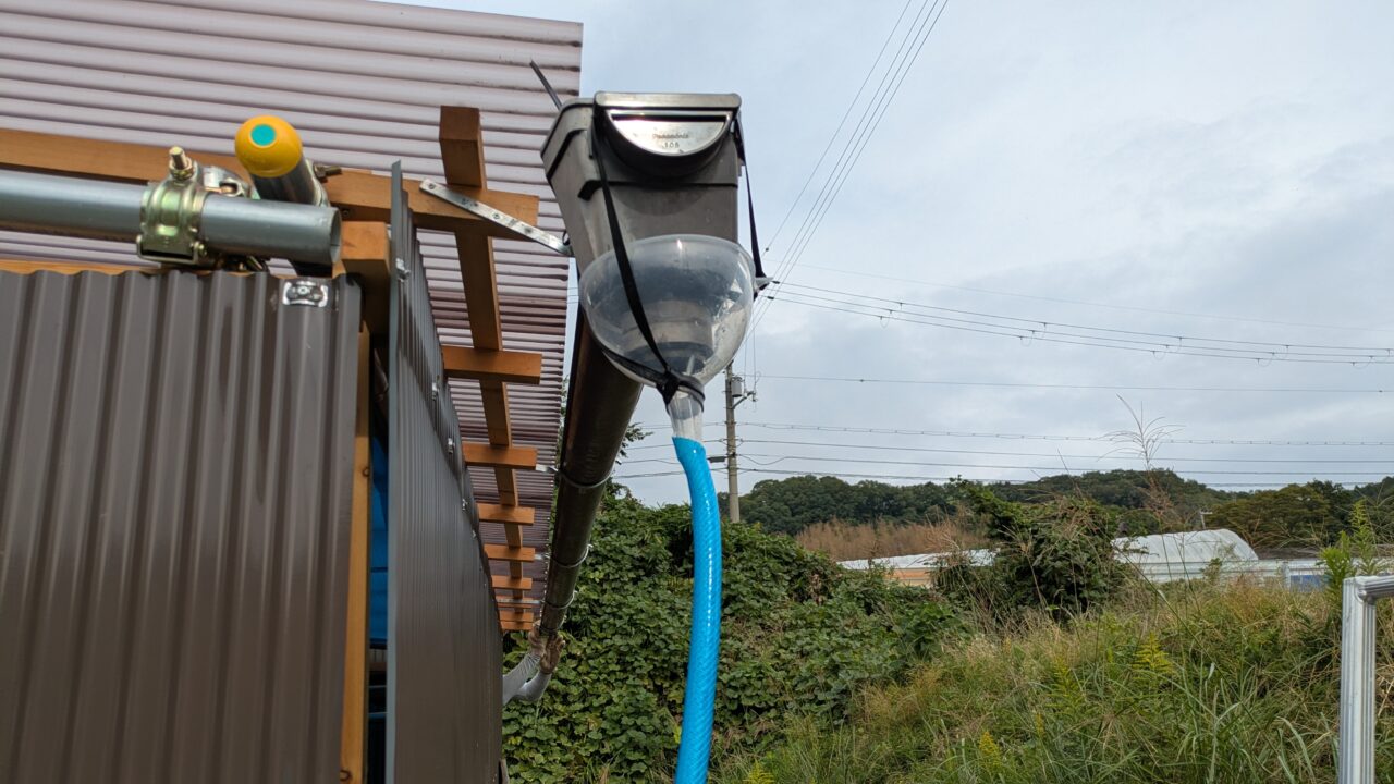 雨どいから風呂桶へは手持ちの100均漏斗と