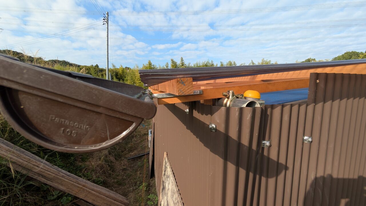 廃材の樋も4mに足りず、継ぎ足ししています。