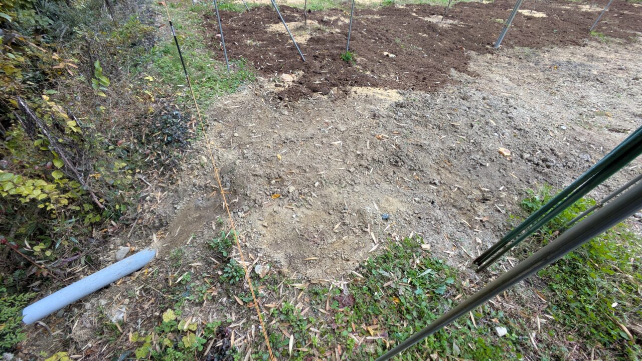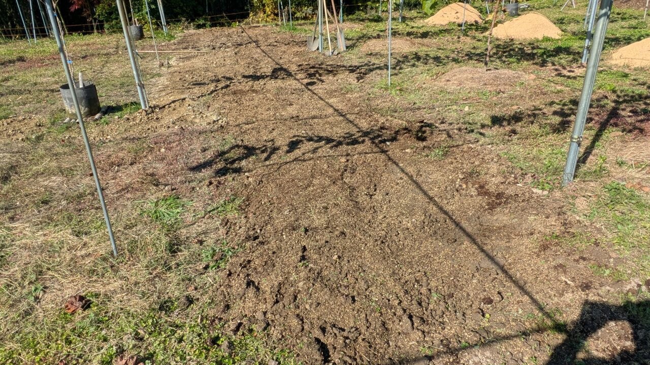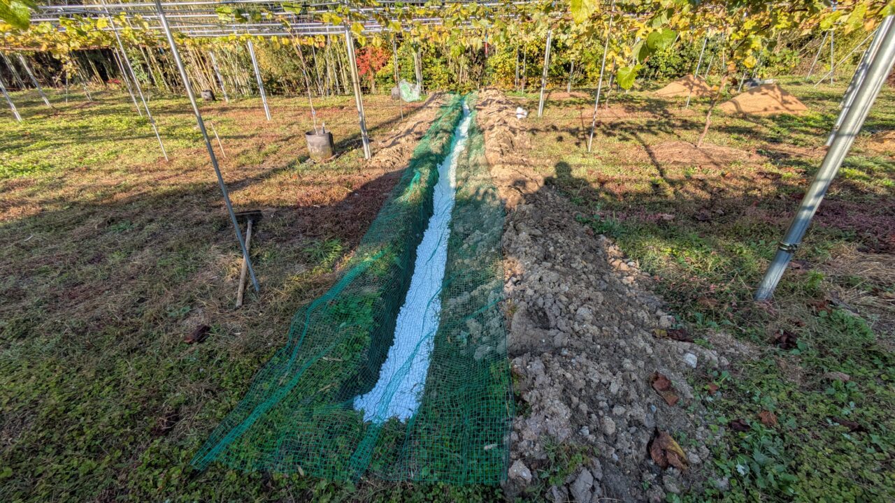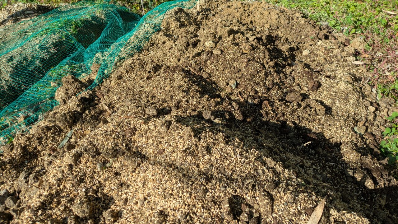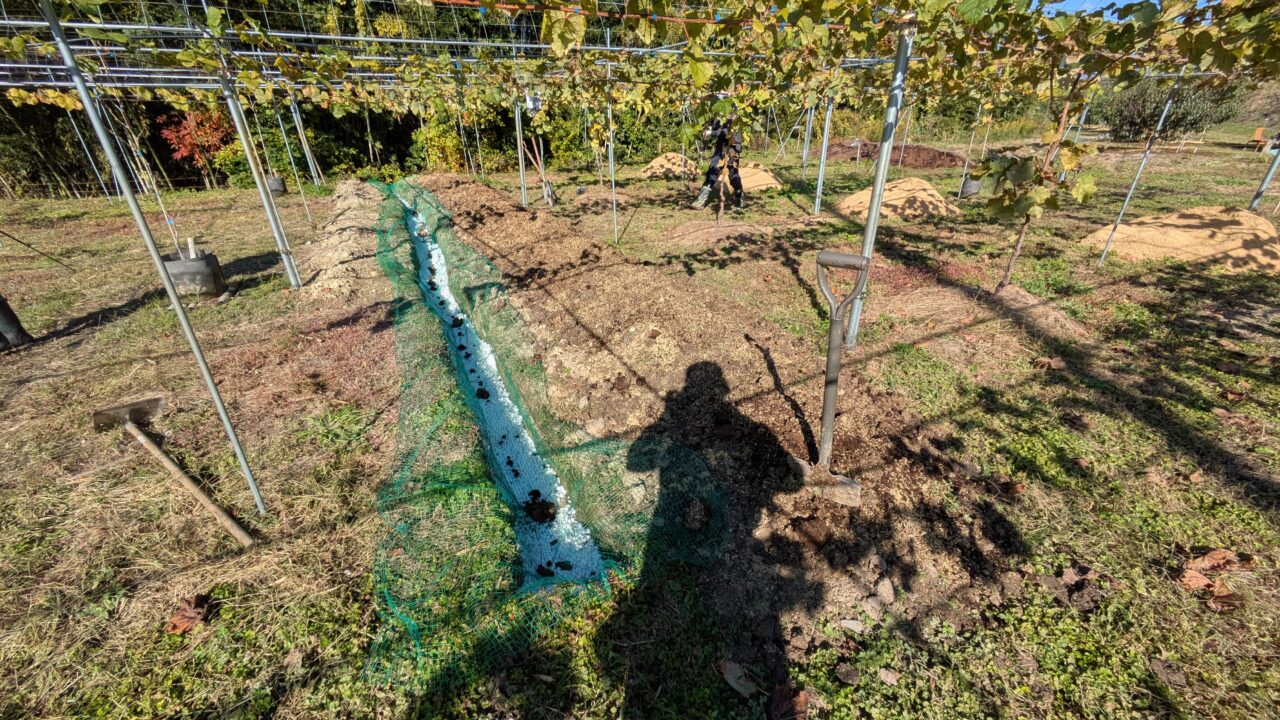 ぶどう畑に牛ふん堆肥ともみ殻を撒いて