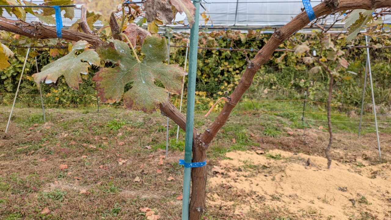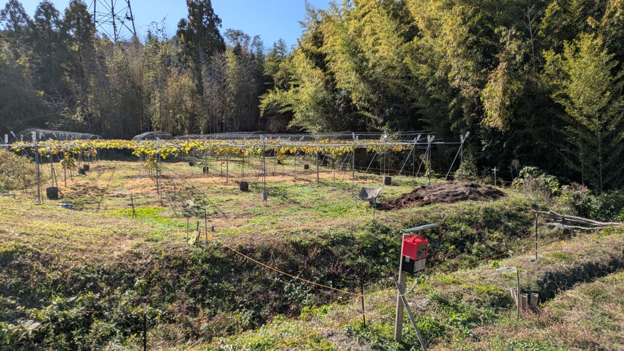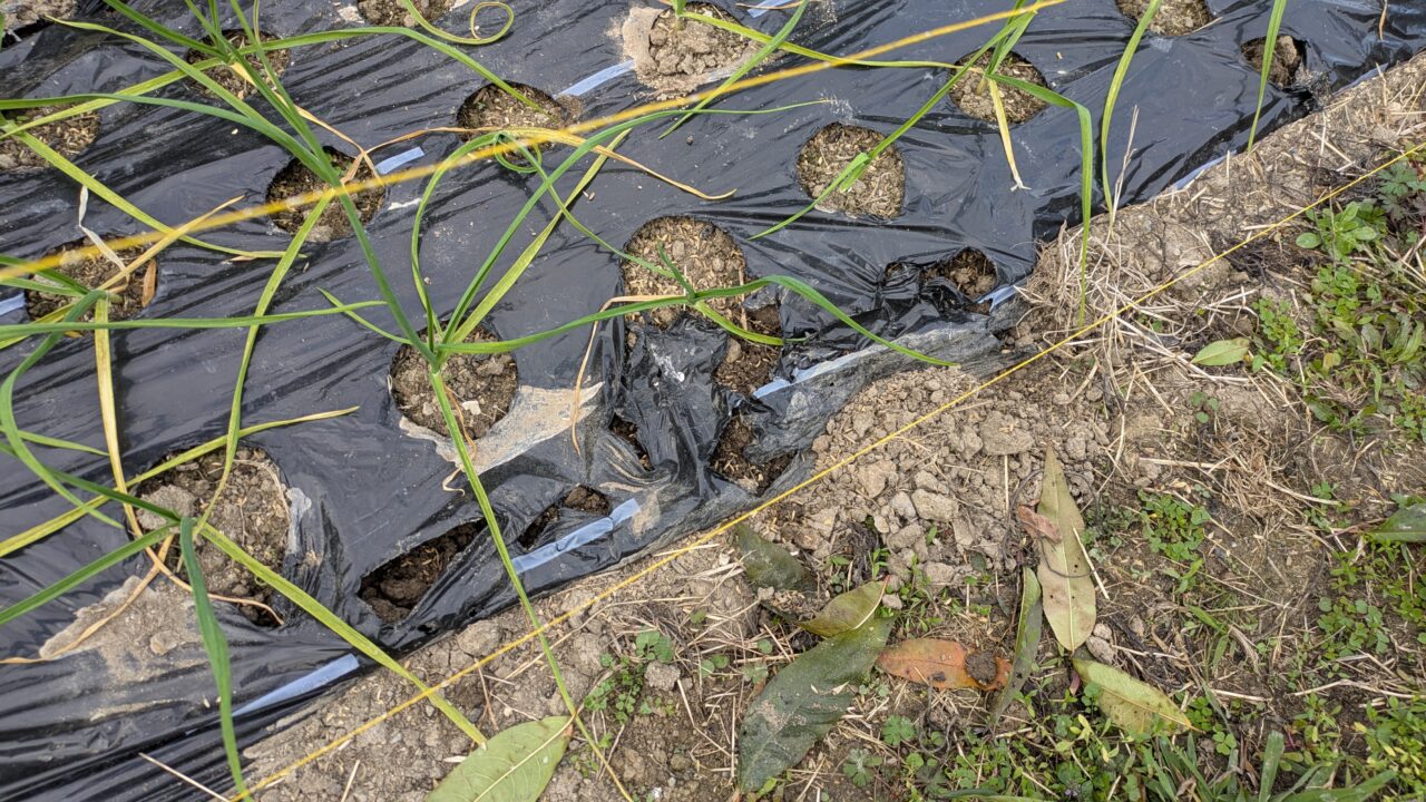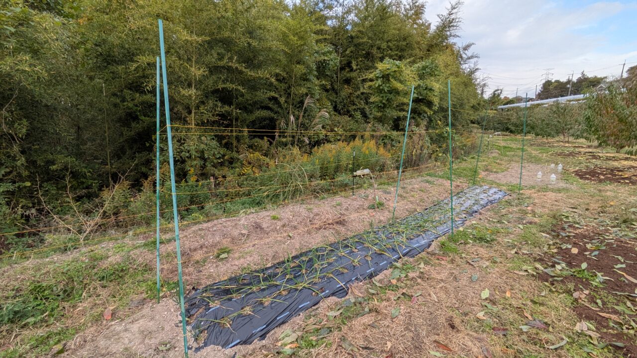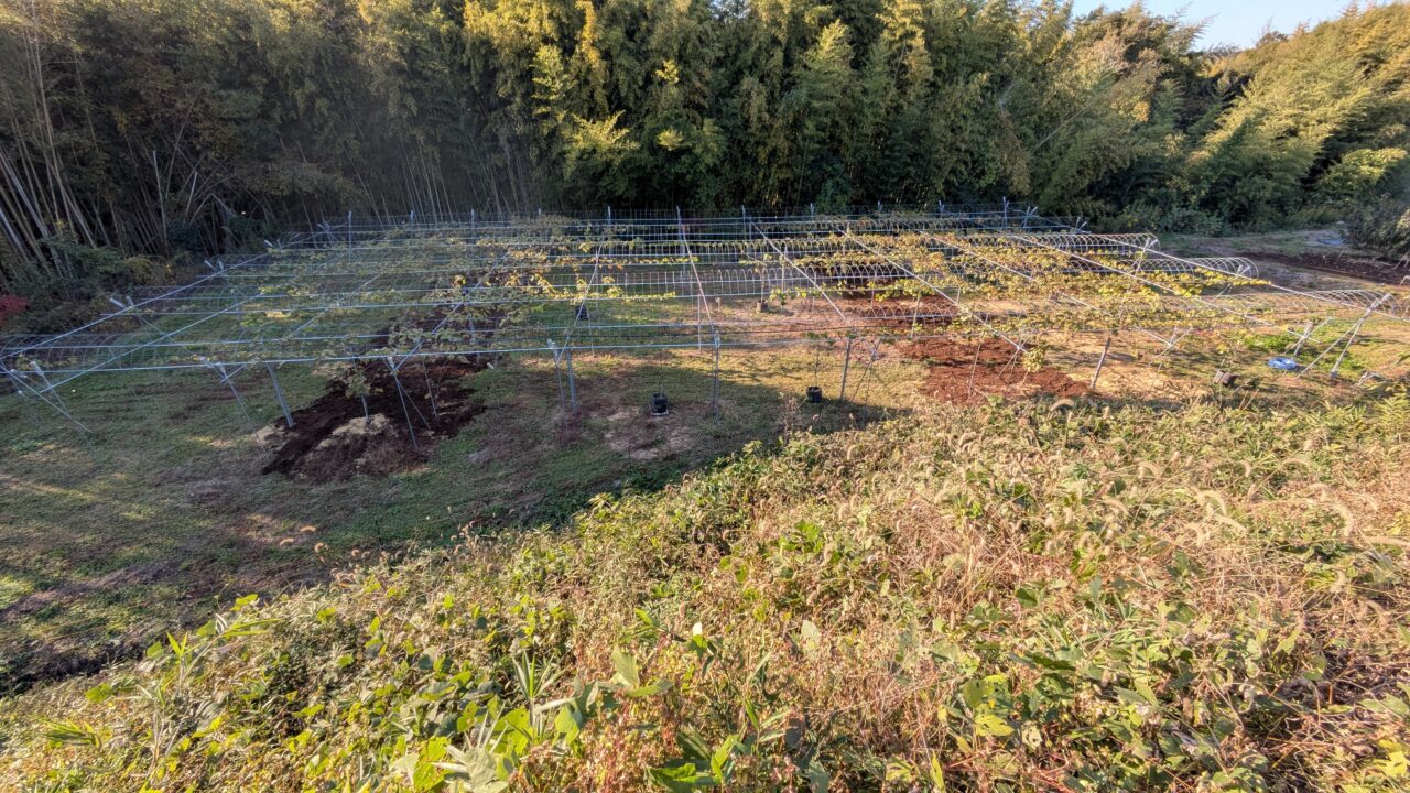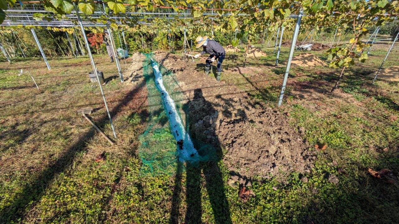 ぶどう畑に牛ふん堆肥ともみ殻を撒いて
