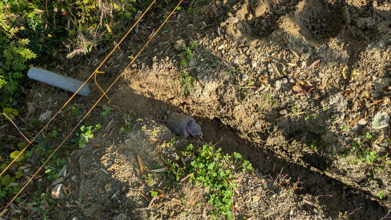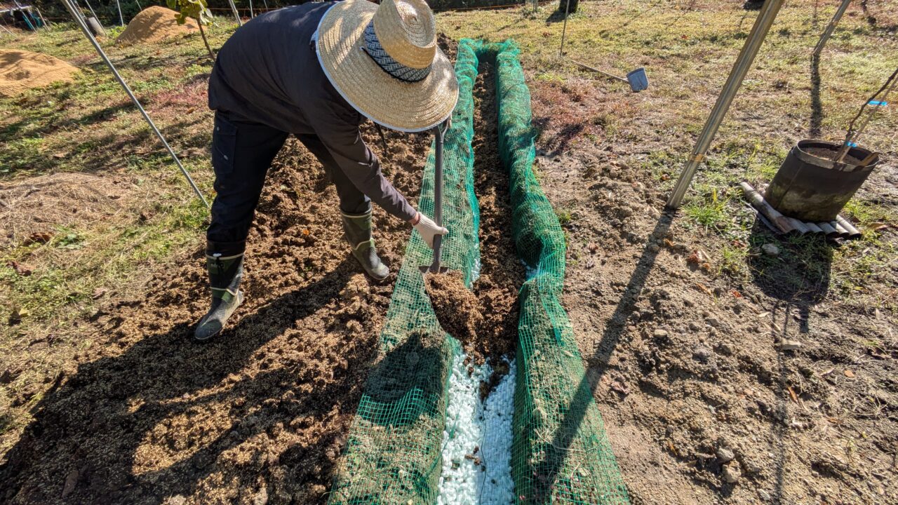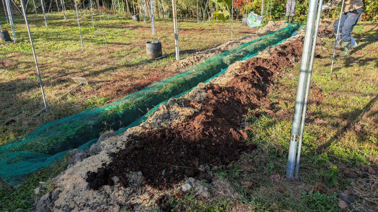 埋め戻す土に堆肥ともみ殻を混ぜて