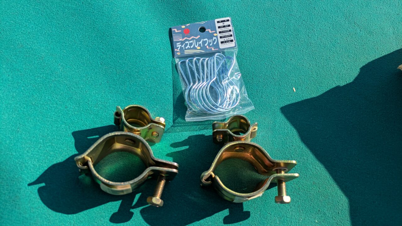 ホームセンターに異形クランプとフックを