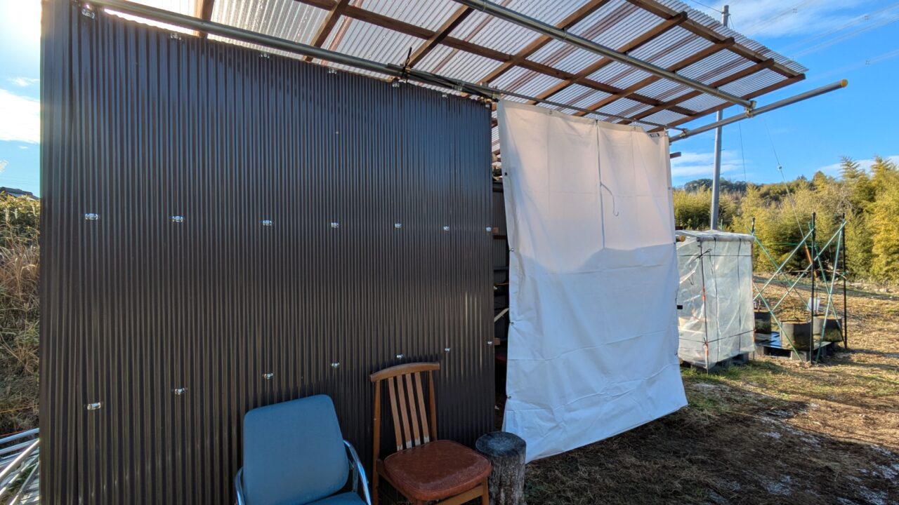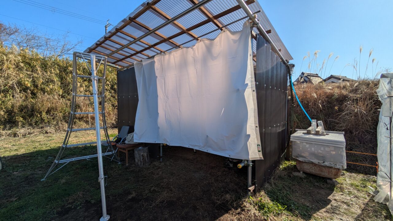 育苗ハウス入口にカーテン設置