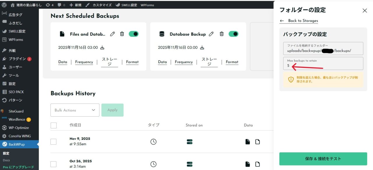 WordPress管理画面からバックアップ設定を見直し